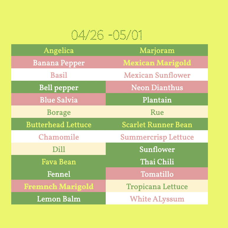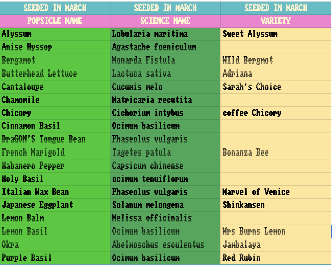 :::::THIS WEEK’S AVAILABLE PLANTS:::::